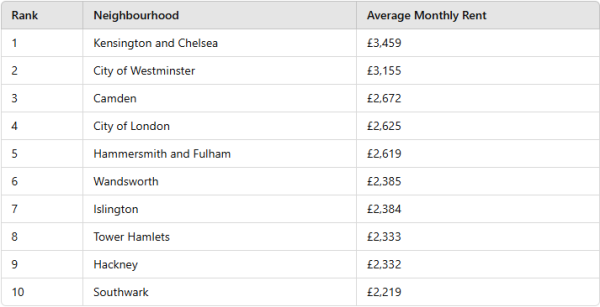 Based on the Zoopla report, the top ten priciest boroughs to rent in London are: