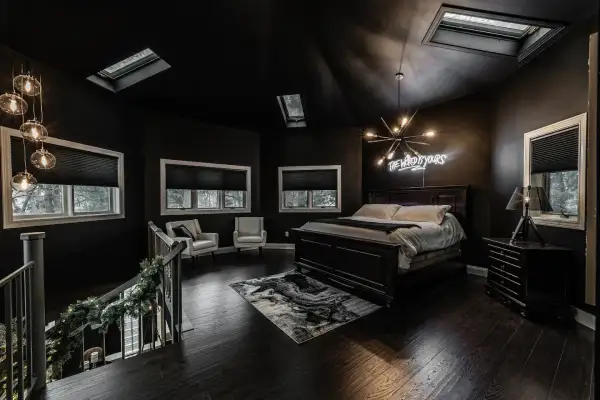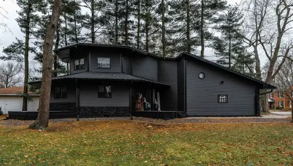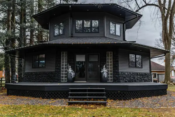 On a quiet residential street just below Lincoln College and about a mile from the historic square in the center of the small town of Lincoln, Illinois, you'll find a very unique and mysterious Airbnb. This is the “Mysterious Black Lincoln, IL Octagon Goth House”, and as its name suggests its main feature is the black paint that covers every surface. It's an all-black 1,500-square-foot, octagon-shaped home that was built in 1993, but received a complete renovation in 2021. The retro octagon design harkens back to the 1800s,and in the midst of a residential area, this home certainly stands out due to its quirky aesthetic.