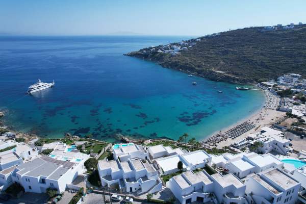 Agios Ioannis offers breathtaking sunsets, crystal-clear waters, and a more secluded atmosphere for couples seeking a romantic and serene getaway. This charming area gained fame as the filming location for the movie Shirley Valentine, and it's ideal for travelers looking to escape the crowds while still enjoying luxury and scenic beauty. The beachfront tavernas offer intimate dining experiences, and the views of Delos Island in the distance make for a picture-perfect backdrop.