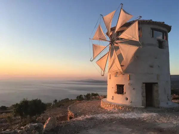 On the beautiful Greek island of Zakynthos there is a white windmill perched on the side of a cliff, with a stunning and unobstructed view of the Ionian Sea. This is an original old windmill that worked to grind wheat and produce flour, but stopped working with the advent of machines a few years later.
