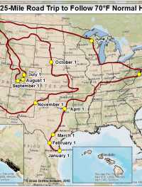 Road-Trip Following A Constant 70°F (21°C) Normal Daytime High Temperature