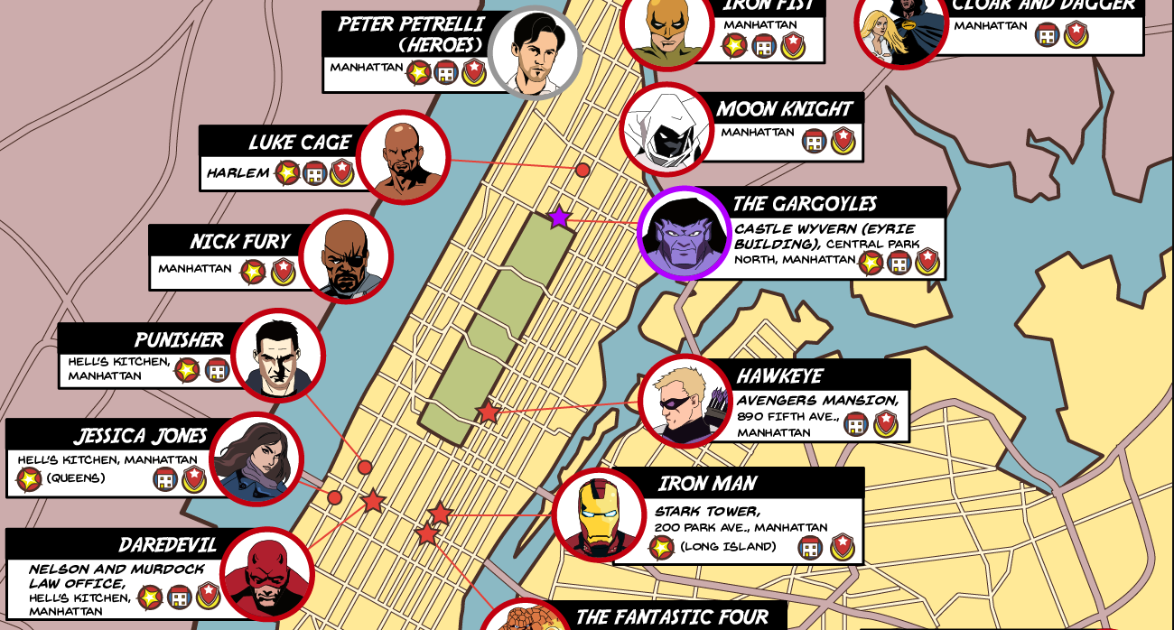 A Map of Superheroes in NYC & The Areas They Protect